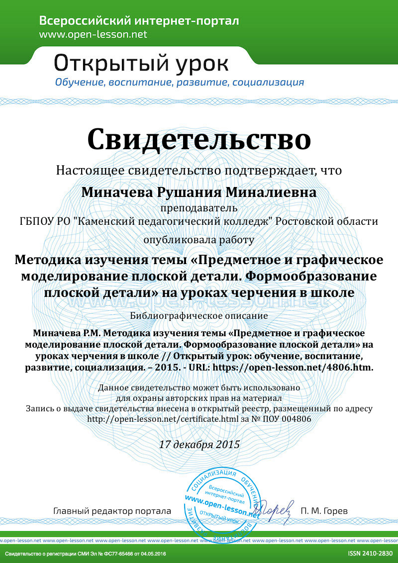 Или такая: учить выполнять чертеж плоской симметричной детали.Результатом достижения любой из выше обозначенных целей является