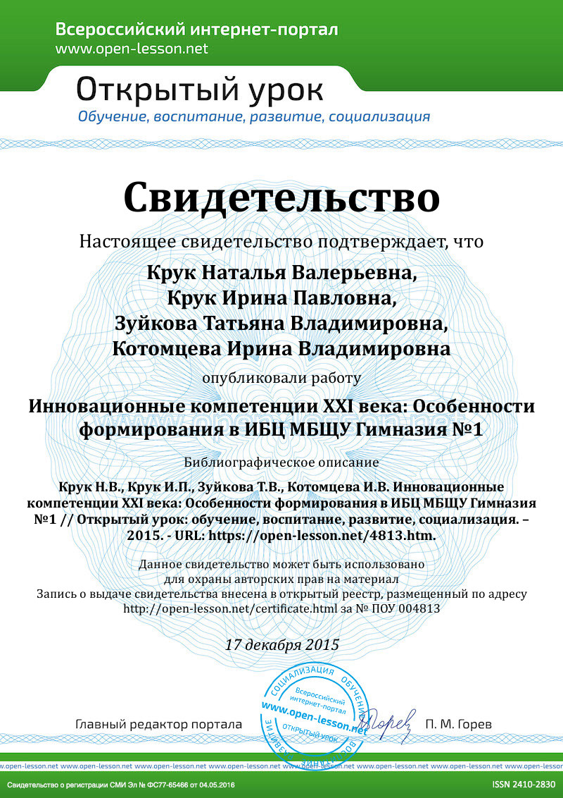 Инновационные компетенции XXI века: Особенности формирования в ИБЦ МБЩУ Гимназия №1