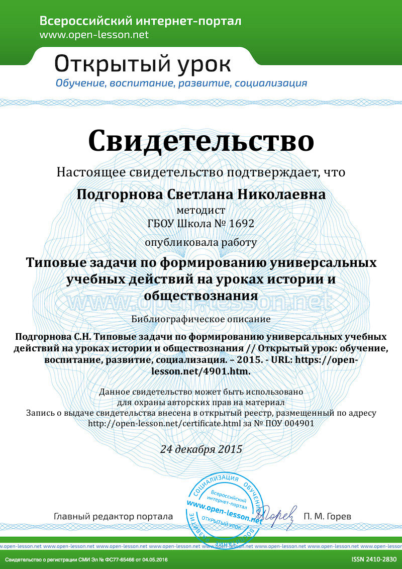 - Программа курсов повышения квалификации «Система работы образовательных учреждений по развитию универсальных учебных действий в условиях реализации Федерального государственного образовательного стандарта основного общего образования» Модуль № 2, 5, 6, 7,8.