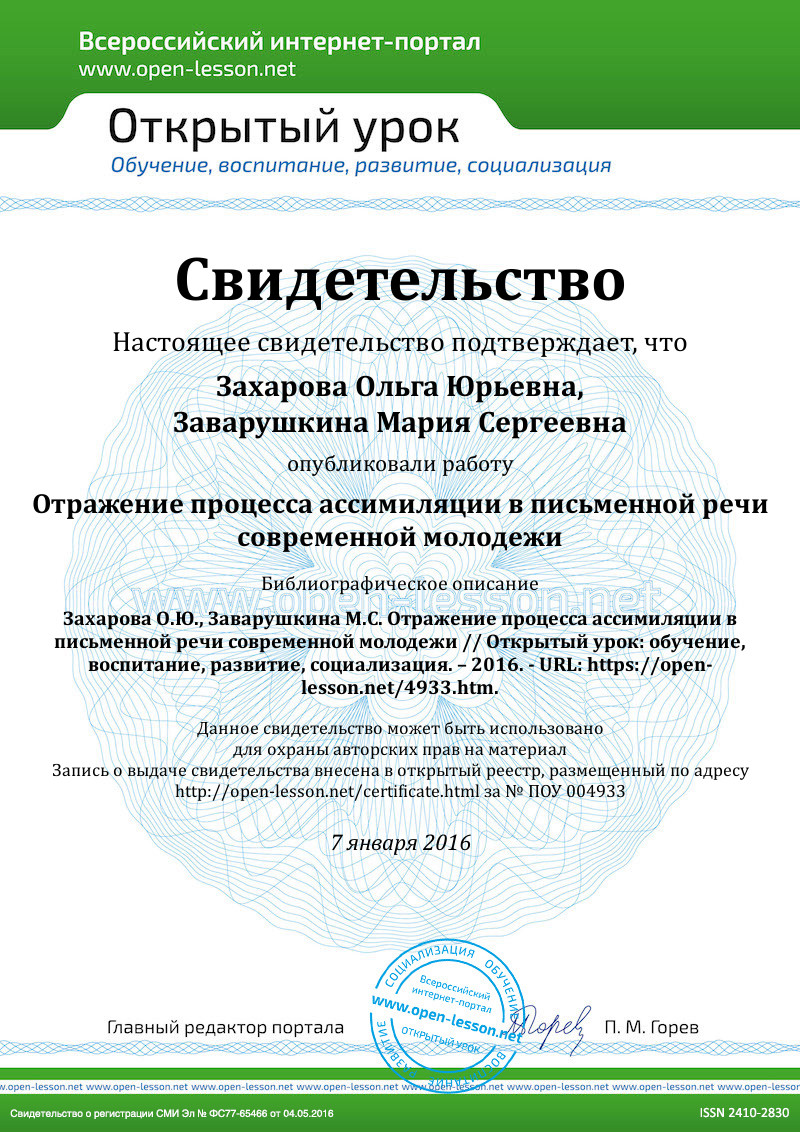 Процесс ассимиляции и его влияние на письменную речь молодежи