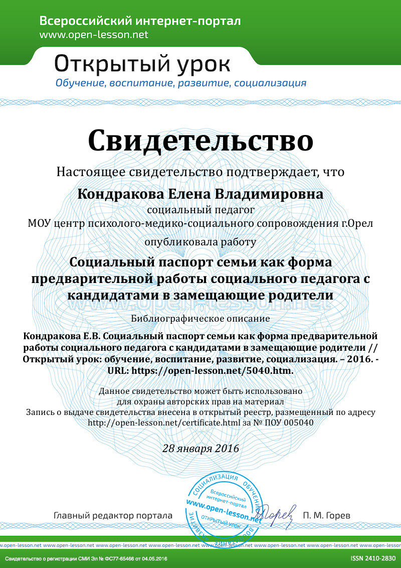 Таким образом, работа социального педагога с кандидатами в замещающие родителиначинается с установления контакта с ними и заполнения социального паспорта. Цель этого этапа - получить предварительное представление о возможности создать замещающую семью во главе с данным кандидатом.