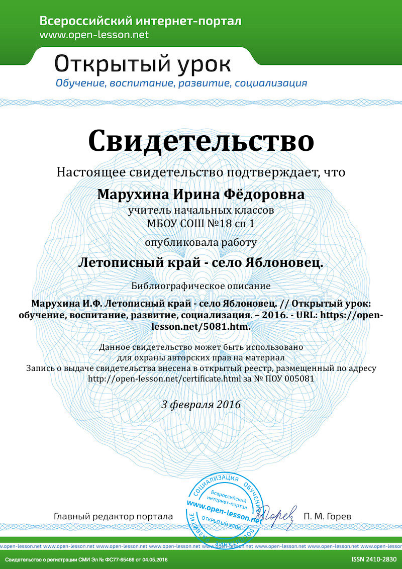 Уважаемые слушатели! Вашему вниманию представляется доклад на тему «Моя малая Родина. Летописный край – село Яблоновец».