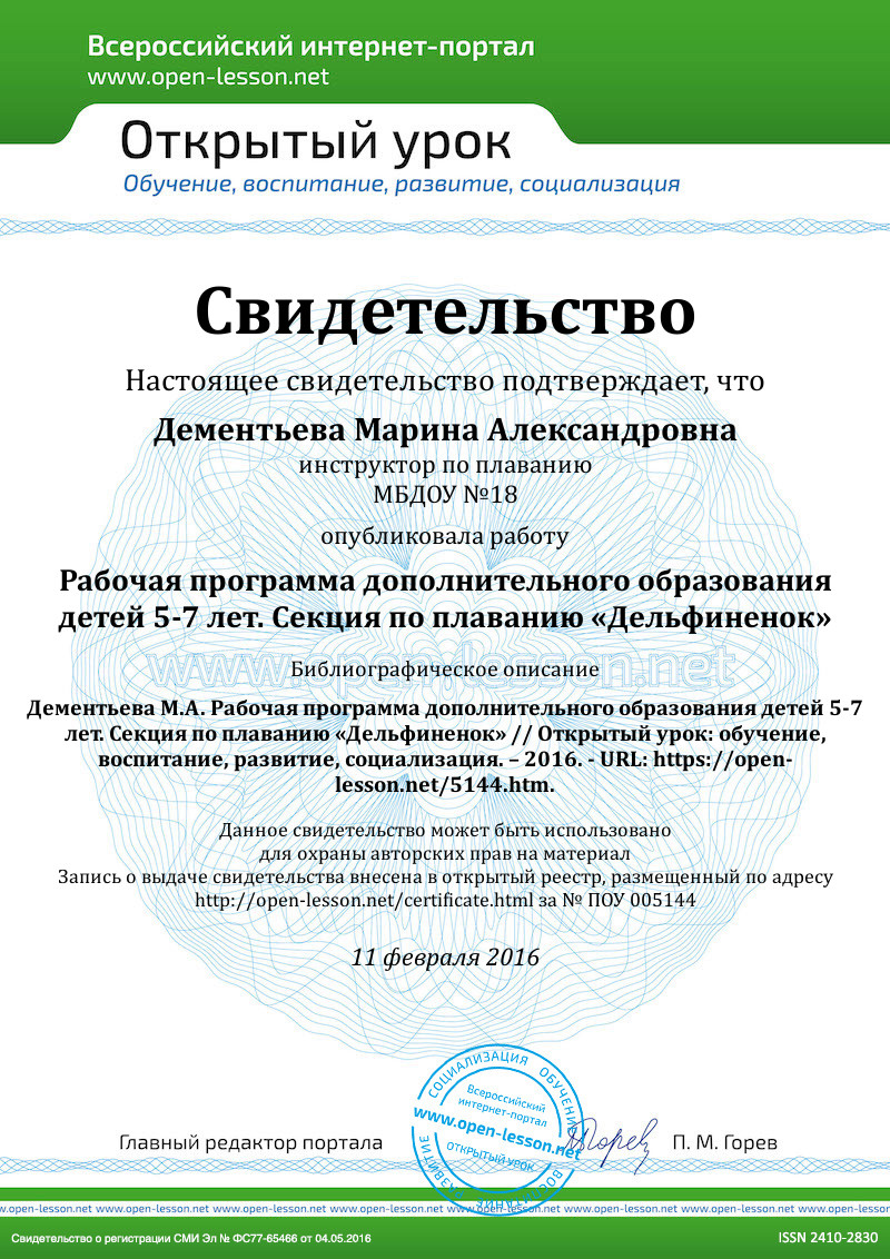 - Большакова И.А. «Маленький дельфин», Москва«Сфера»2002г.3.Васильев В.С. « Обучение детей плаванию», Москва«Физкультура и спорт» 1998г.