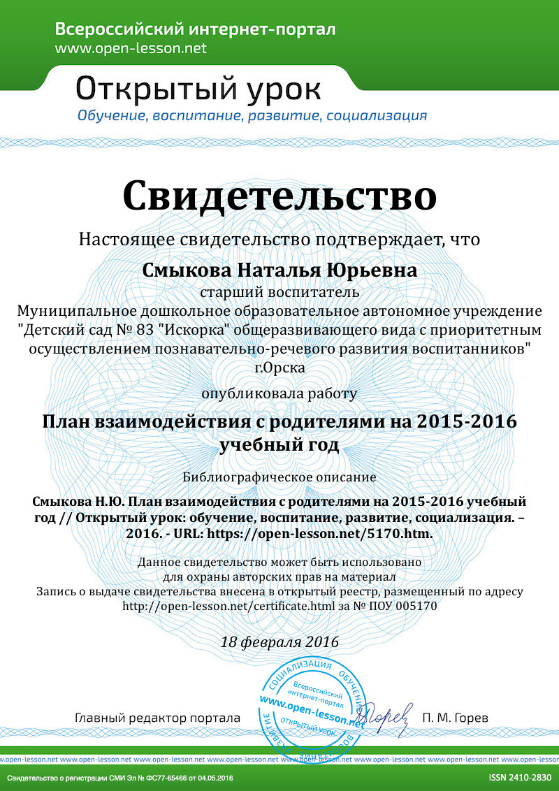 - Организационное родительское собрание «Программное содержание воспитания и образования дошкольников по общеобразовательной программе МДОАУ «Детский сад № 83 «Искорка» г.Орска». Выбор родительского комитета МДОАУ № 83.