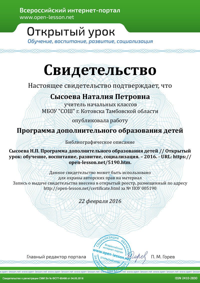 Данная программа разработана на основе авторской программы Ельшовой Галины Николаевны - педагога дополнительного образования высшей квалификационной категории.