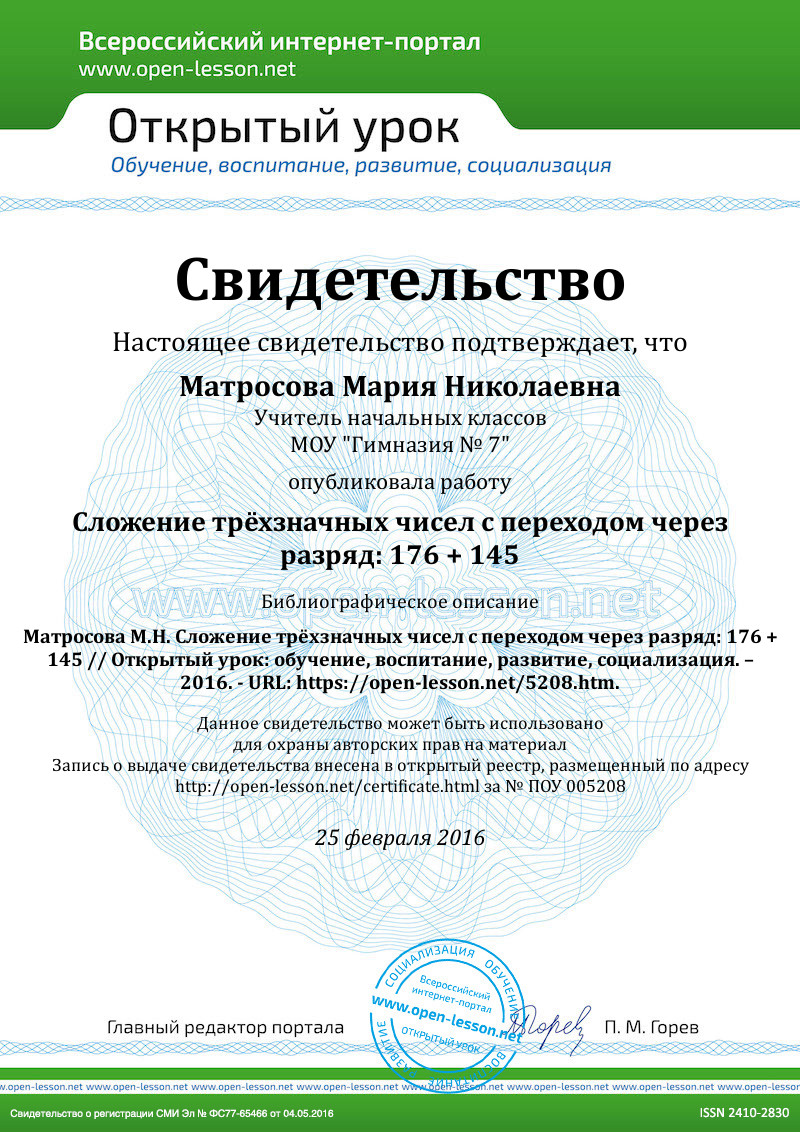– Вы не подняли рук, значит, в чём ваше затруднение? (Мы не можем доказать, что верно решили пример 176 + 145.)