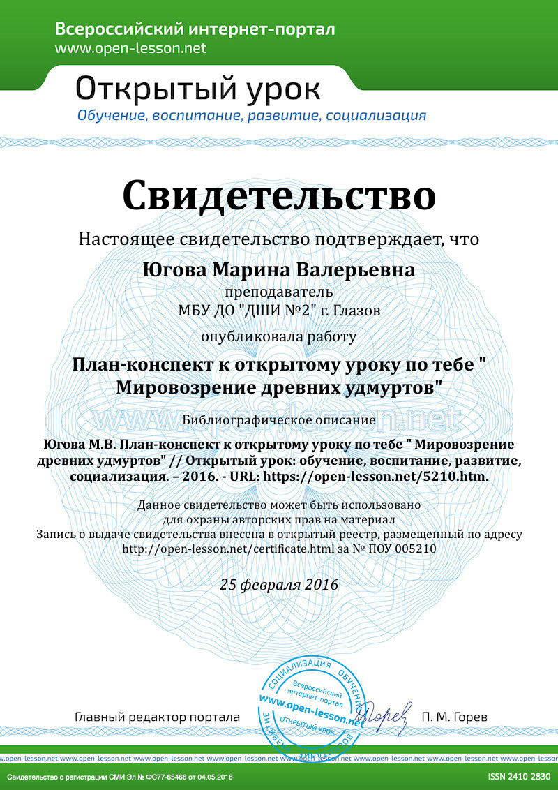Цель для учителя: расширить представление о мировоззрении древних удмуртов.