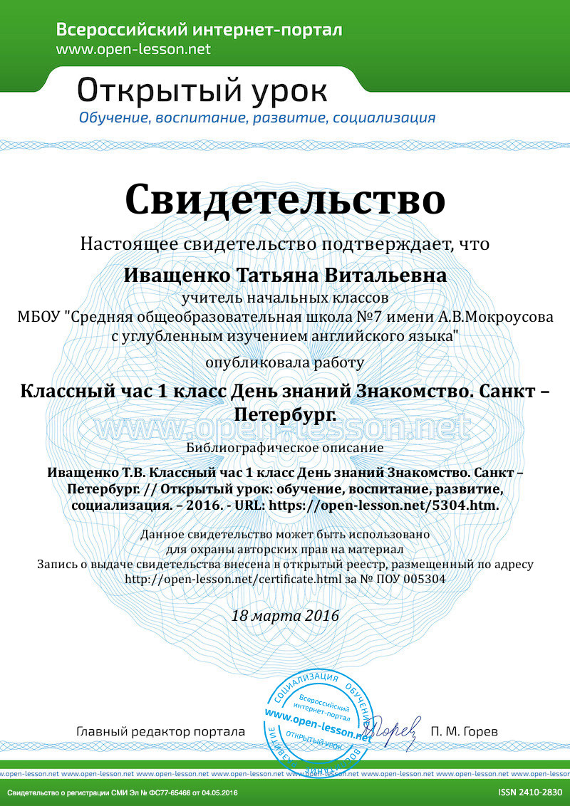 - Запись на доске «Здравствуй, школа!»