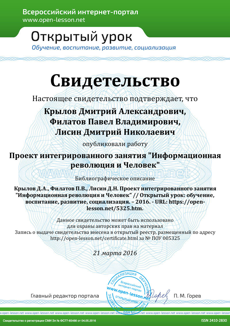 «Наша с вами беседа имеет большое прикладное значение, вы приобретёте дополнительные знания о формировании современного информационного общества и опыте осмысления его культуры». |