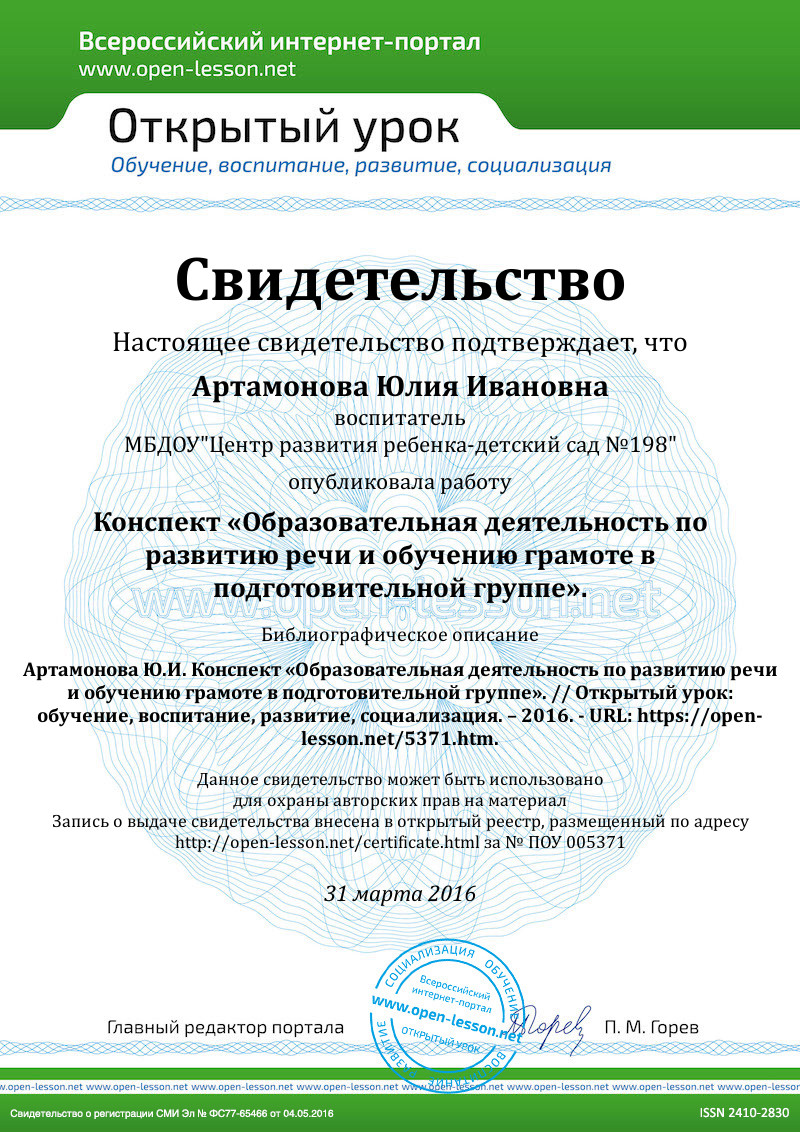 Образовательная деятельность по развитию речи и обучению грамоте в подготовительной группе».