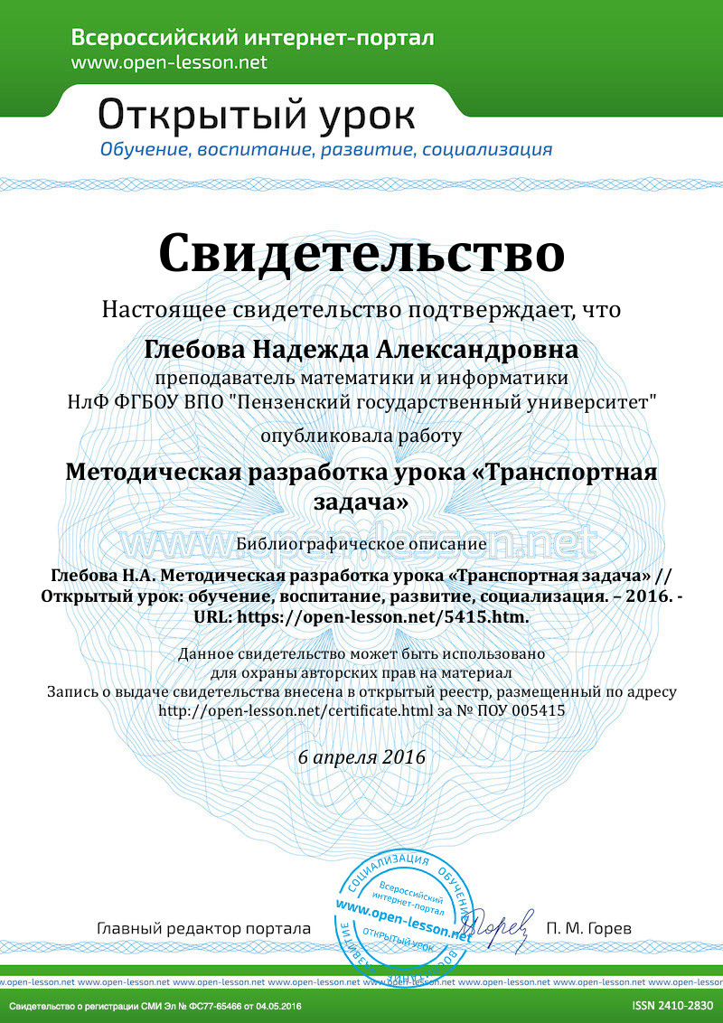 Определение: Опорный план называется оптимальным, если он приводит к минимальной суммарной стоимости перевозок.