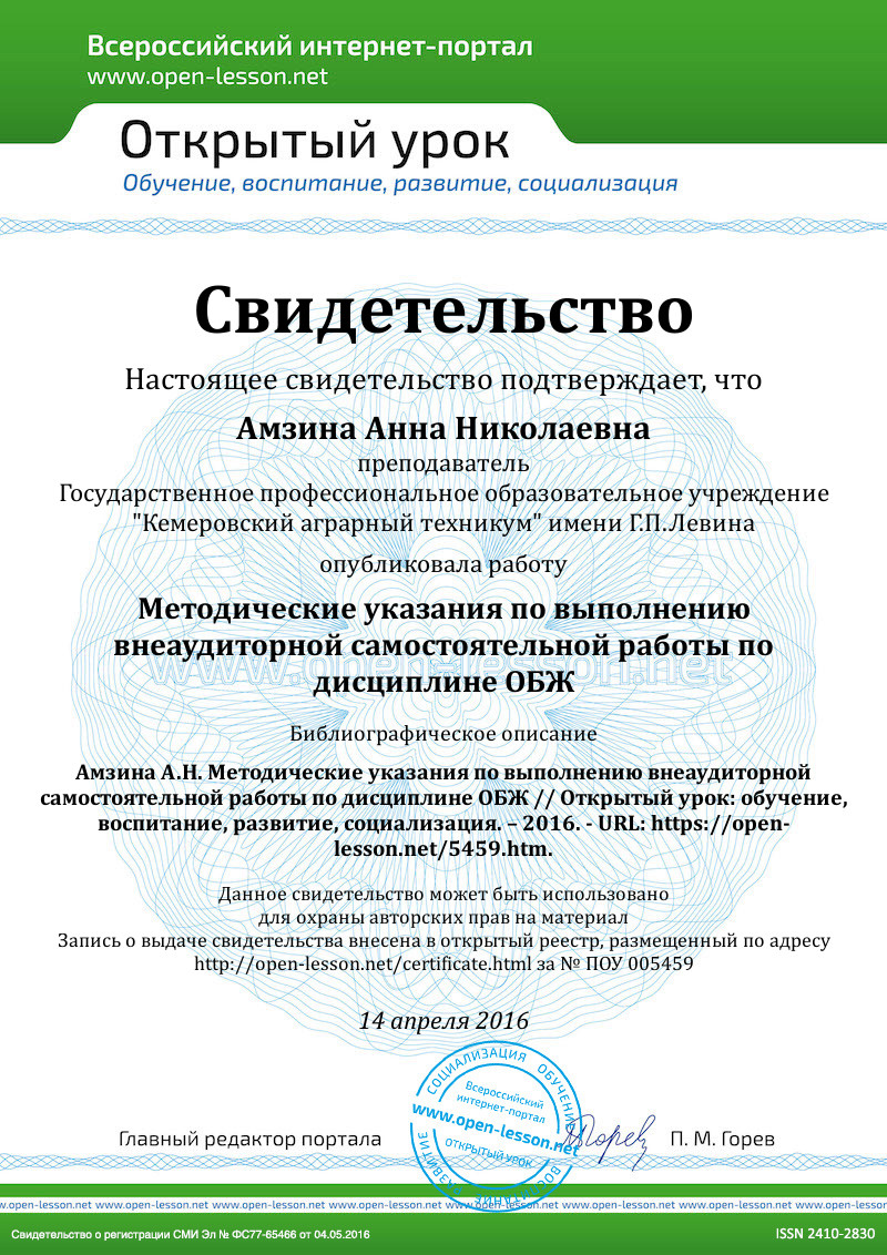 - ИР 2 - Образовательный портал[Электронный ресурс] www.obzh.ru Режим доступа: http://www.obzh.ru/, свободный