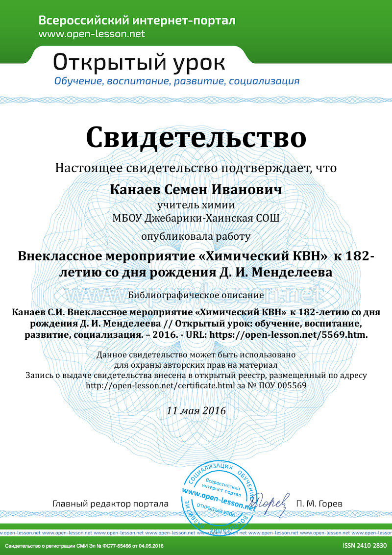 - Конкурс «Путешествие по периодической системе Д.И. Менделеева»