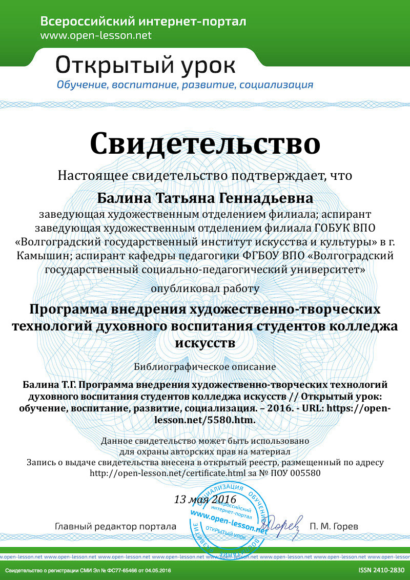 Таким образом, художественно-творческие технологии духовного воспитания в художественном образовании – способ организации и функционирования содержания духовного воспитания; последовательная, взаимосвязанная система действий педагога и учащихся по восхождению к ценностям, к культуре, к себе и к Другому на основе художественного восприятия действительности, а также создание чего-либо нового в области изобразительного искусства в результате художественной и творческой деятельности.