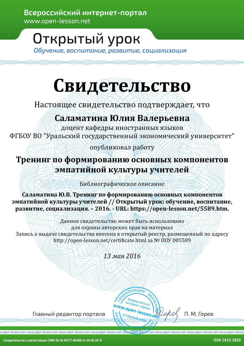 Выход в рефлексивную позицию: В чем состоит моя рефлексия? Произошла ли смена представлений о сделанном? Почему? Достаточны ли те рефлексивныесредства, которые использовались для оценки эмпатийной культуры у меня? Если недостаточны, то в чем? А если достаточны, то почему я так считаю?