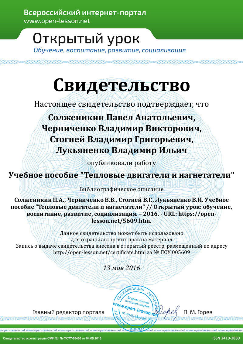 Введение. Запомнить определение тепловых двигателей и нагнетателей, их классификацию.