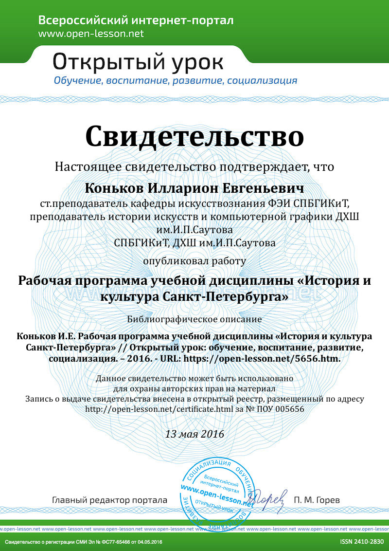 - публичных выступлений и докладов по истории и культуре Санкт-Петербурга;