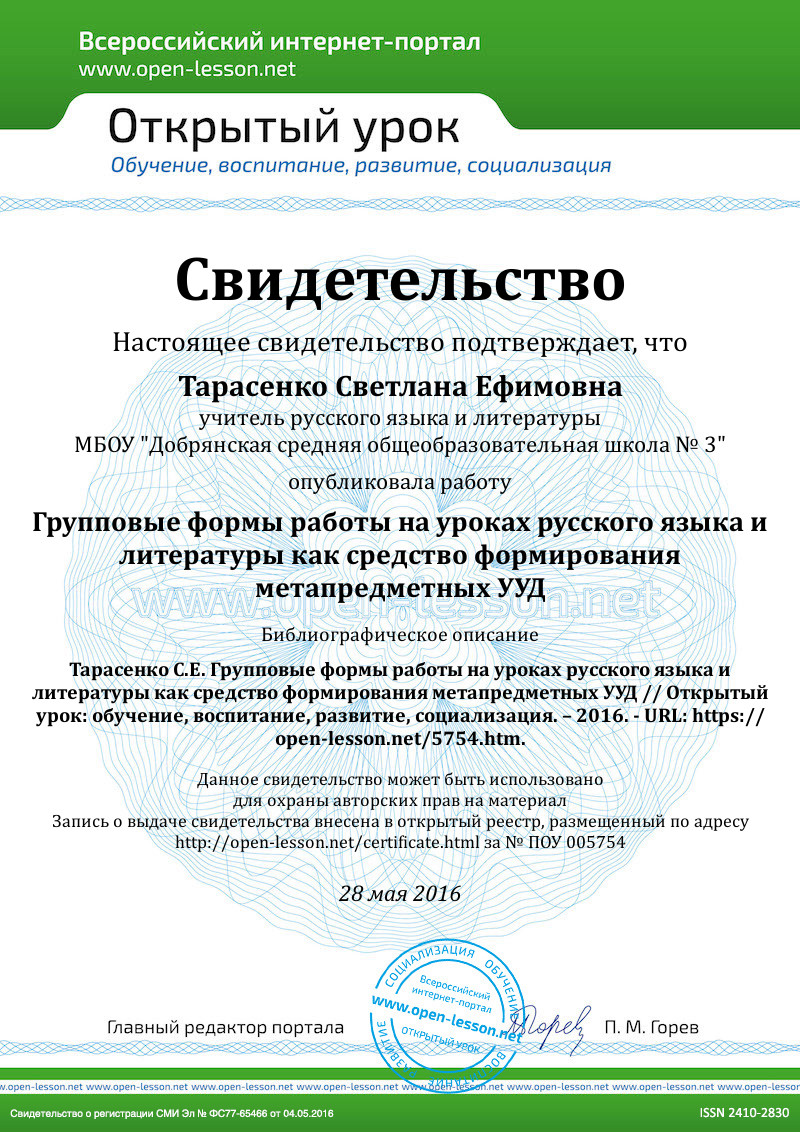 Групповая форма организации работы на уроках позволяет активно включать учащихся в атмосферу сотворчества, создавать мотивацию обучения, стимулировать личностное восприятие предмета. Ученики оказываются в условиях, когда им хочется высказаться, ибо в микроколлективе каждый ощущает свою личностную значимость, веру в свои творческие силы. Таким образом и формируются метапредметные универсальные учебные действия, которые пригодятся ребятам в дальнейшем не только в учебной деятельности, но и в дальнейшей жизни.