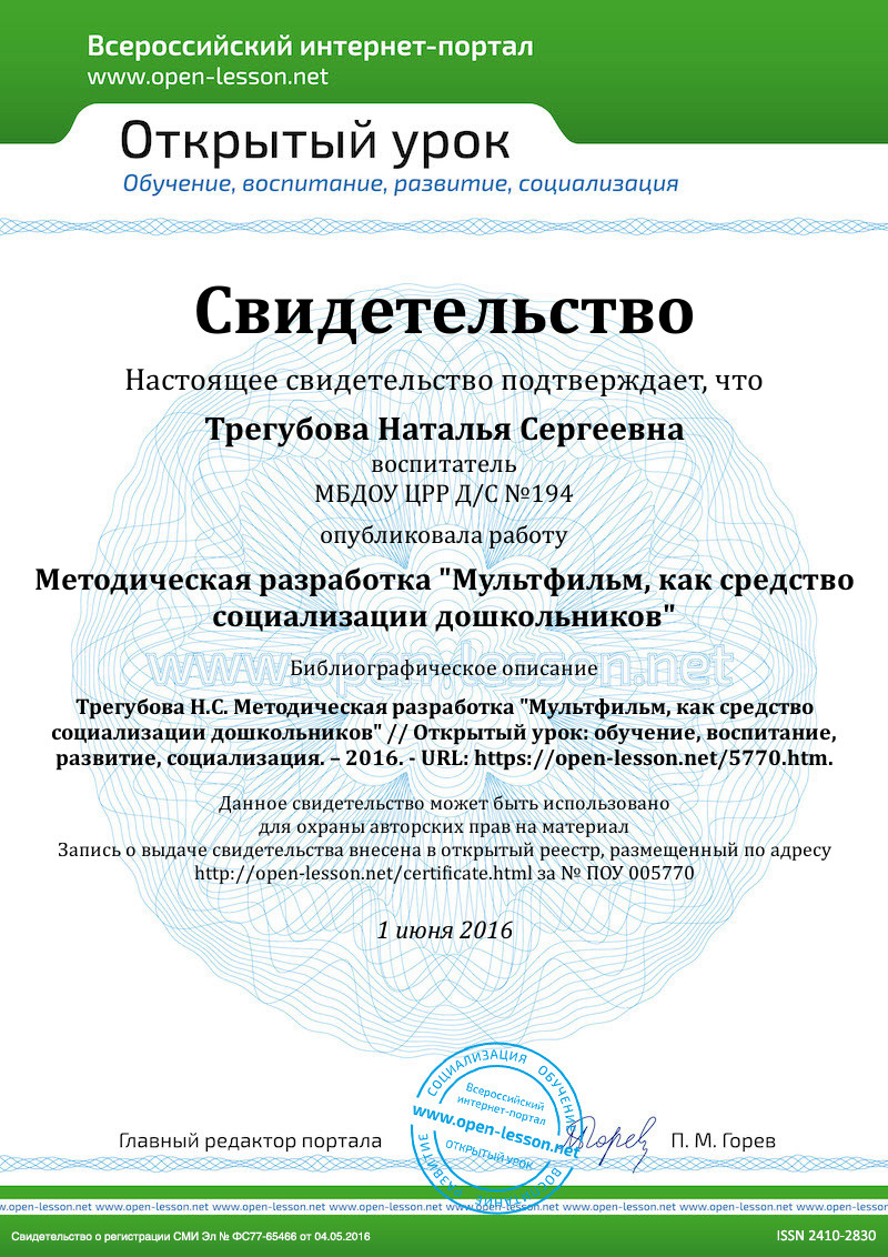 Анализ практической деятельности показывает, что мультфильм является эффективным средством социализации детей дошкольного возраста.