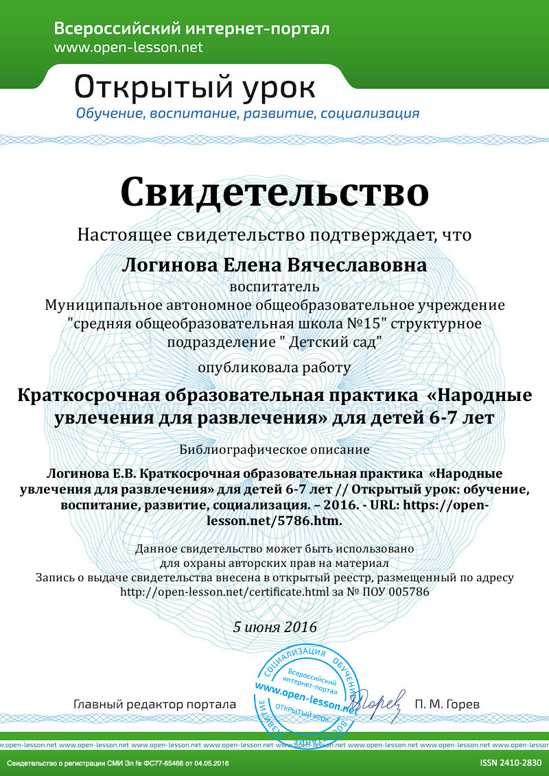 Данная краткосрочная образовательная практика «Народные увлечения всем на развлечения» имеет специализированную направленность художественно-эстетического развития детей дошкольного возраста, эффективно содействующую духовному и познавательному развитию, направленную на приобщение детей к народной культуре, развитие творческих способностей детей, формированию первоначальных трудовых навыков.