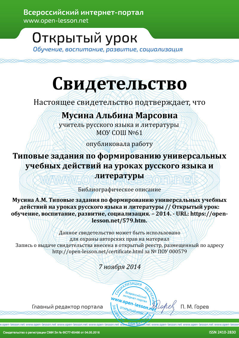 Teacher of Russian and literature, school 61,Magnitigorsk