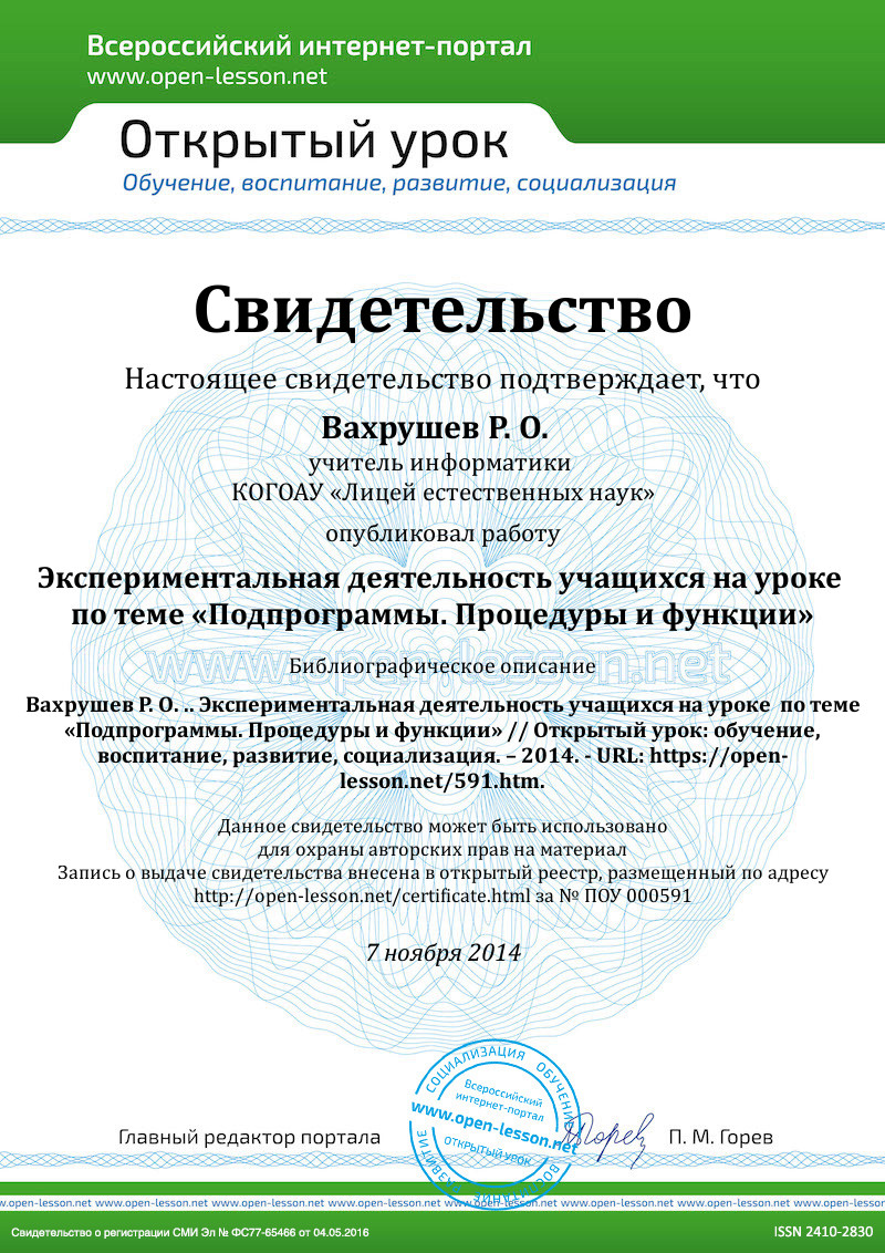 var, то его называют параметром-переменной и говорят, что он передается по ссылке (ссылка на переменную основной программы). Все изменения в таком случае происходят с самой переменной основной программы.var, то его называют параметром-значением и говорят, что он передается по значению (принимает такое же значение, что и параметр в вызове). В данном случае переменная основной программы после выполнения процедуры не изменяется.- Бабанский Ю. К. Методы обучения в современной общеобразовательной школе. – М.: Просвещение, 1985. – 208 с.