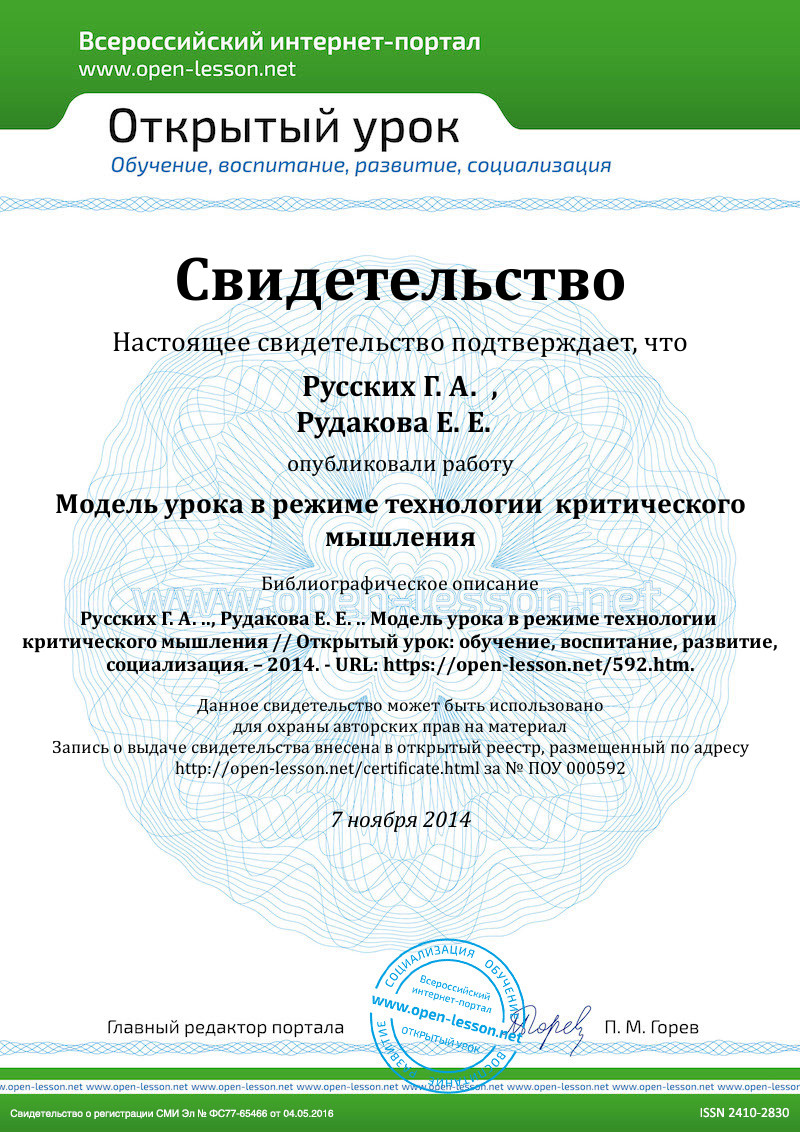 Выполняя групповое задание, общаясь между собой, ученики участвуют в активном построении знаний, в добывании необходимой информации для решения проблемы. Школьники приобретают новое качество, характеризующее развитие интеллекта на новом этапе, – способность критически мыслить. Ученые-педагоги выделяют следующие признаки критического мышления: