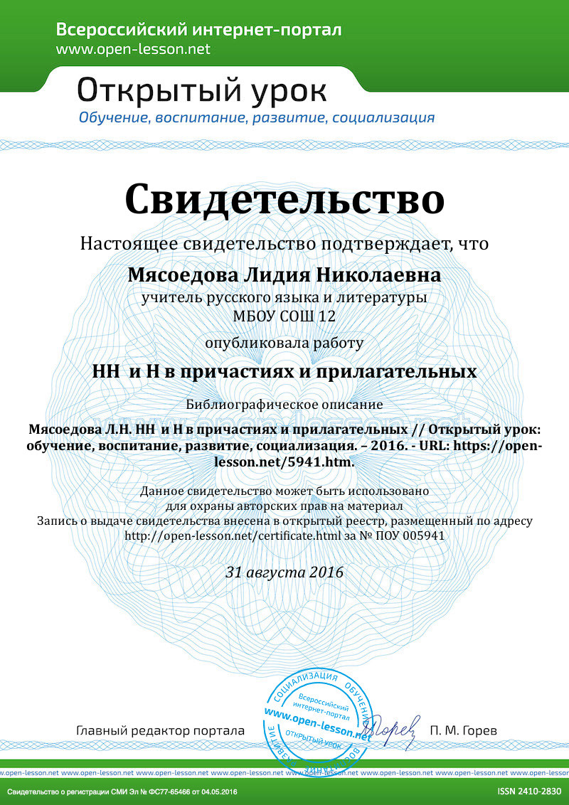 4. В краткой форме – только Н
