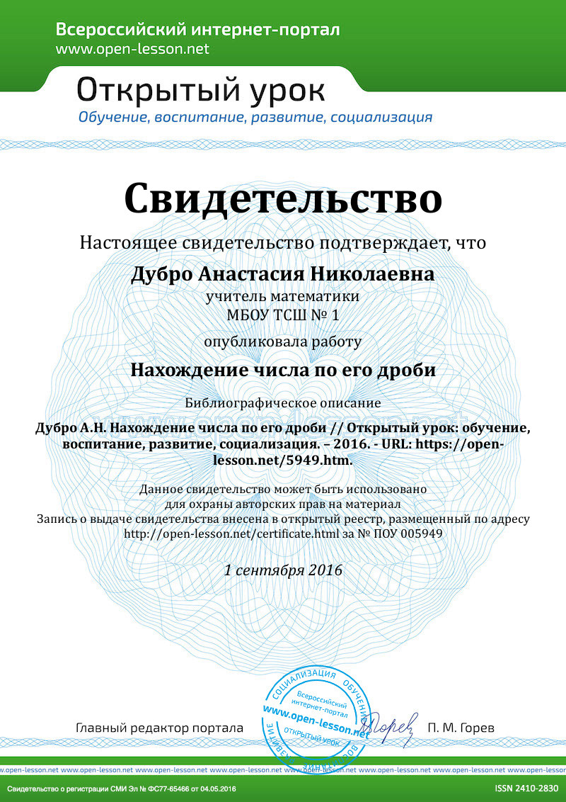 1. Как найти число по его значению дроби?