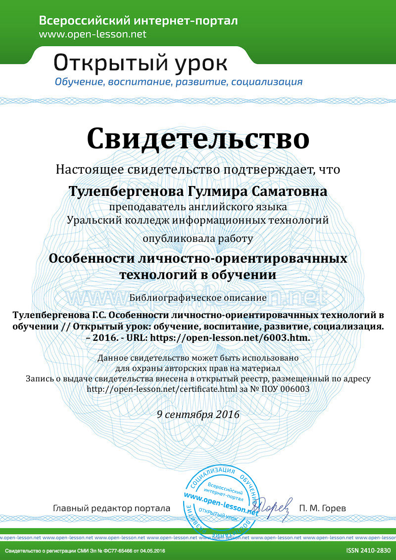 затруднения, как они были устранены, и что чувствовал он при этом. Используя личностно-ориентированные технологии, мы способствуем гуманизации образовательного процесса.