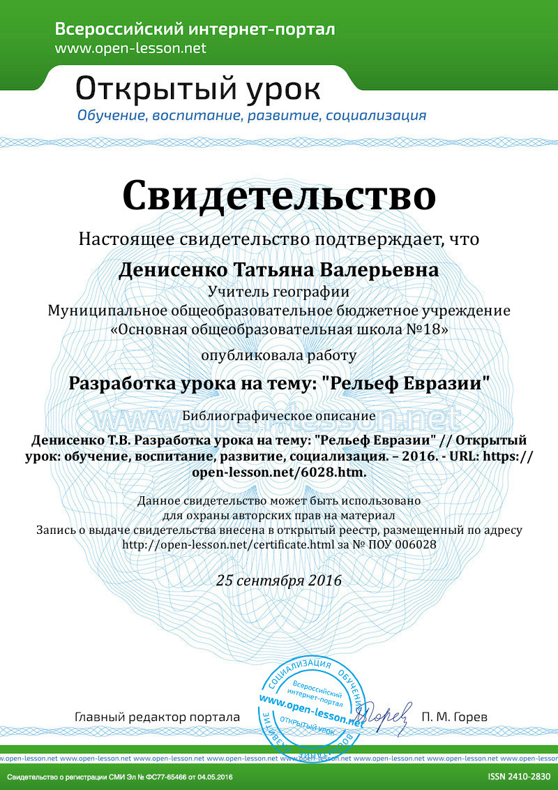 - Презентация «Рельеф Евразии»
