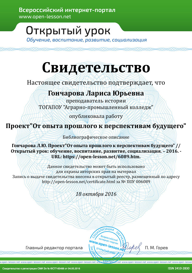 - Предложение использования материала работы в области патриотизма при планировании уроков, внеурочной работы и общетехникумовских мероприятий.