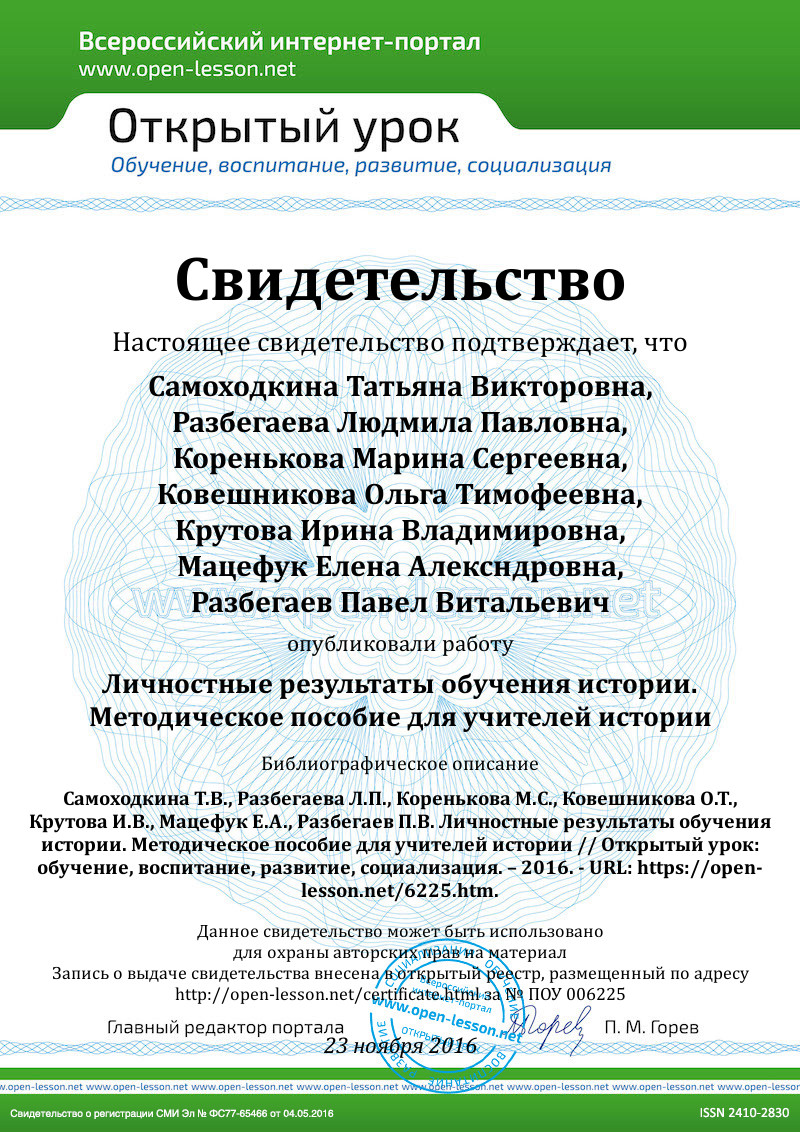 Разработан ряд заданий ценностно-смыслового характера по истории России для разных классов. Возможно их дополнение и разработка соответствующих заданий для курса Всеобщей истории.