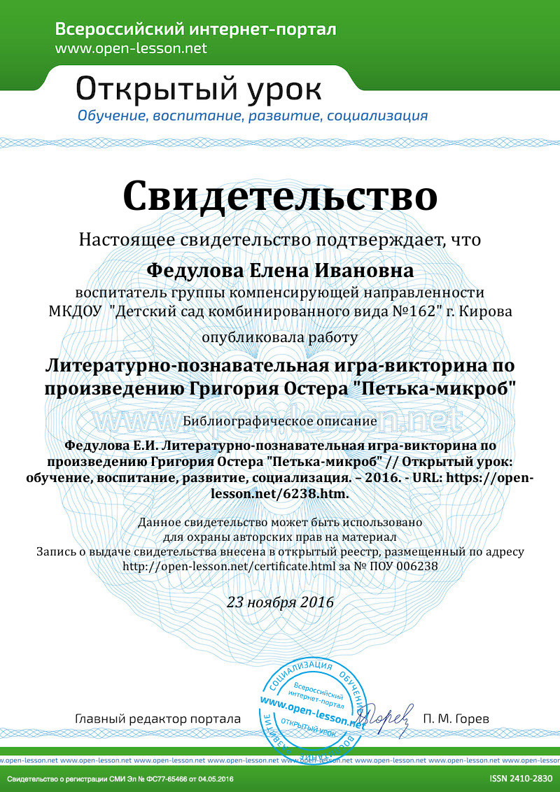 Литературно- познавательная игра-викторина формирует у детей определенный объем знаний по сложной, но очень важной для здоровья человека теме - микроорганизмы. Игра является сетевой частью проекта "Микробы в жизни человека". Проведя опытно - экспериментальное исследование, закрепив знание в практической деятельности, дети обобщают их с помощью данной игры.