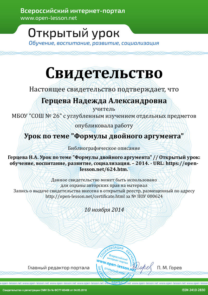 1. Вывести формулы тригонометрии, позволяющие выразить sin(2x), cos(2x), tg(2x) через sin(x), cos(x), tg(x) и выработать умения и навыки применения формул при выполнении тригонометрических преобразований.