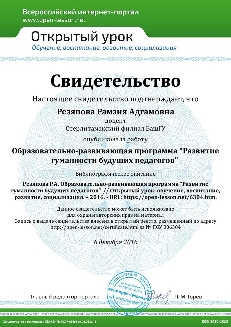 Образовательно-развивающая программа «Развитие гуманности будущих педагогов»