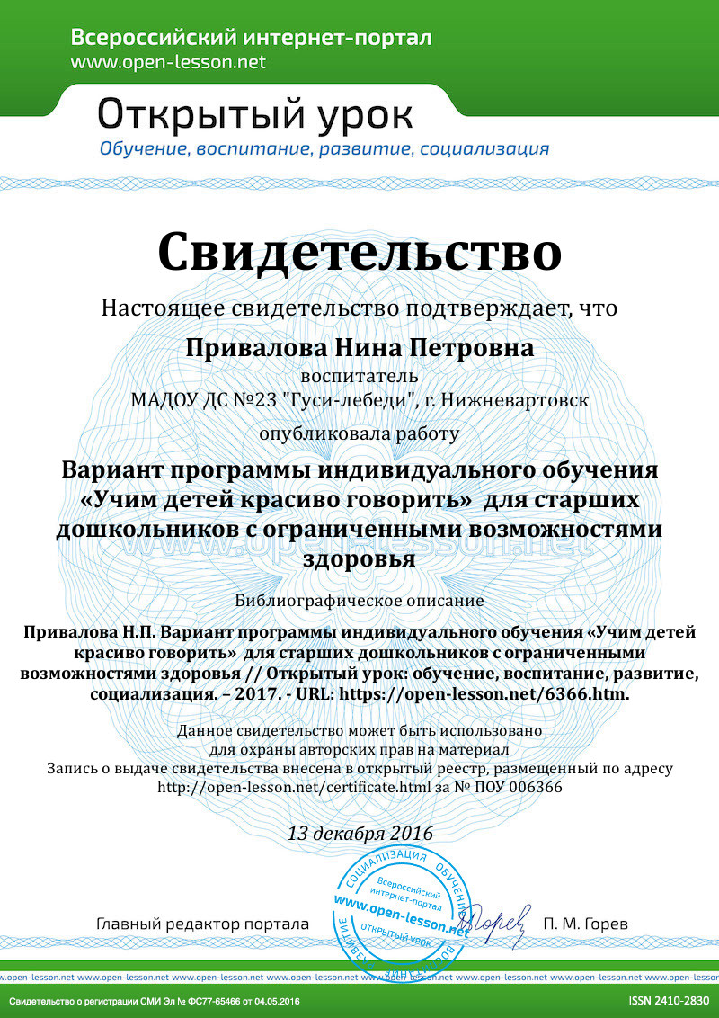 7. Программа индивидуального обучения «Учим детей красиво говорить» для старших дошкольников с общим недоразвитие речи