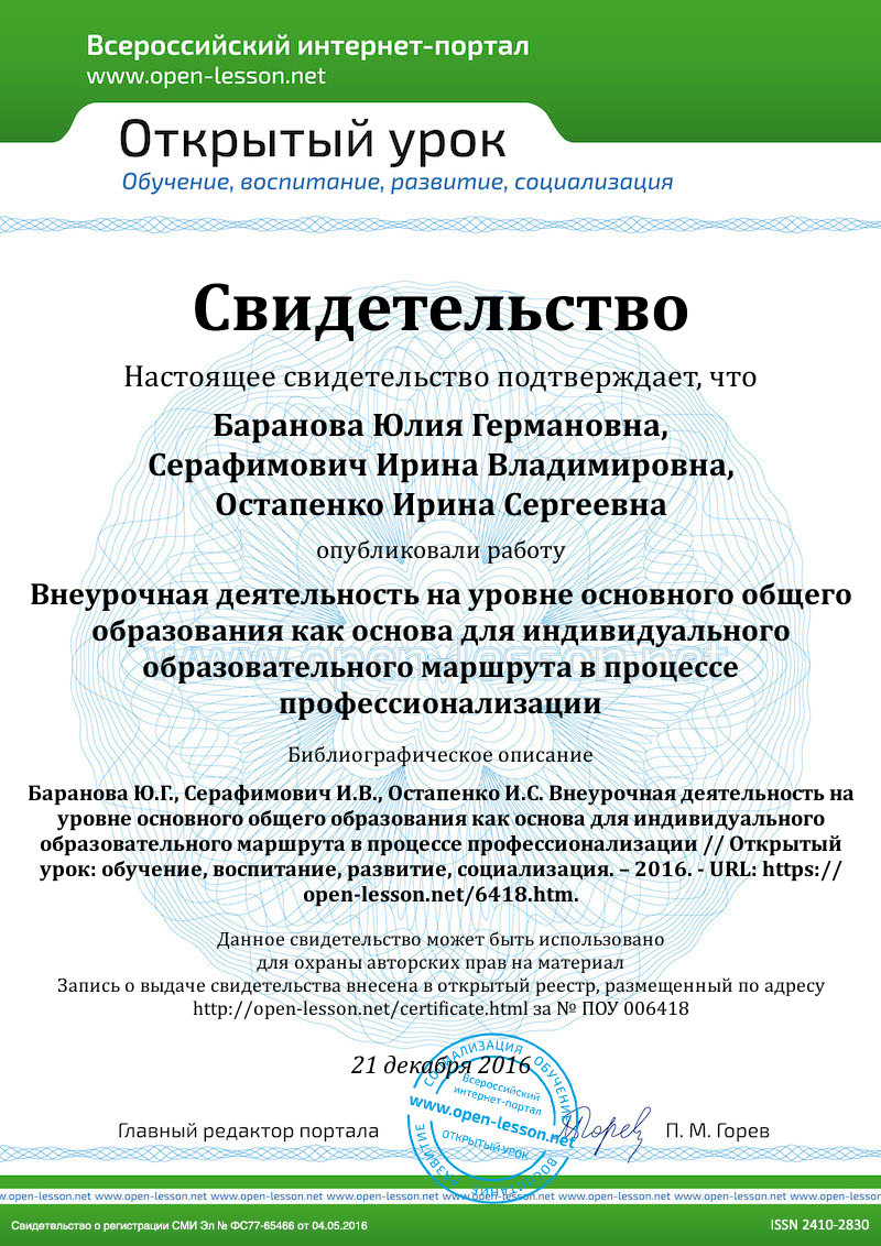 В современных условиях актуальной становится такая организация образования, которая обеспечивала бы способность человека включаться в общественные процессы, при этом приоритетной становится задача проектирования пространства индивидуально-ориентированного образования для максимального раскрытия творческого потенциала и самореализации личности. В связи с переходом на новые стандарты второго поколения происходит совершенствование внеурочной деятельности. Создаваемая школой основная ООО ООП (образовательная программа основного общего образования) способствует более разностороннему раскрытию индивидуальных способностей подростка, которые не всегда удаётся полностью рассмотреть на уроке, развивает у него интерес к различным видам деятельности.