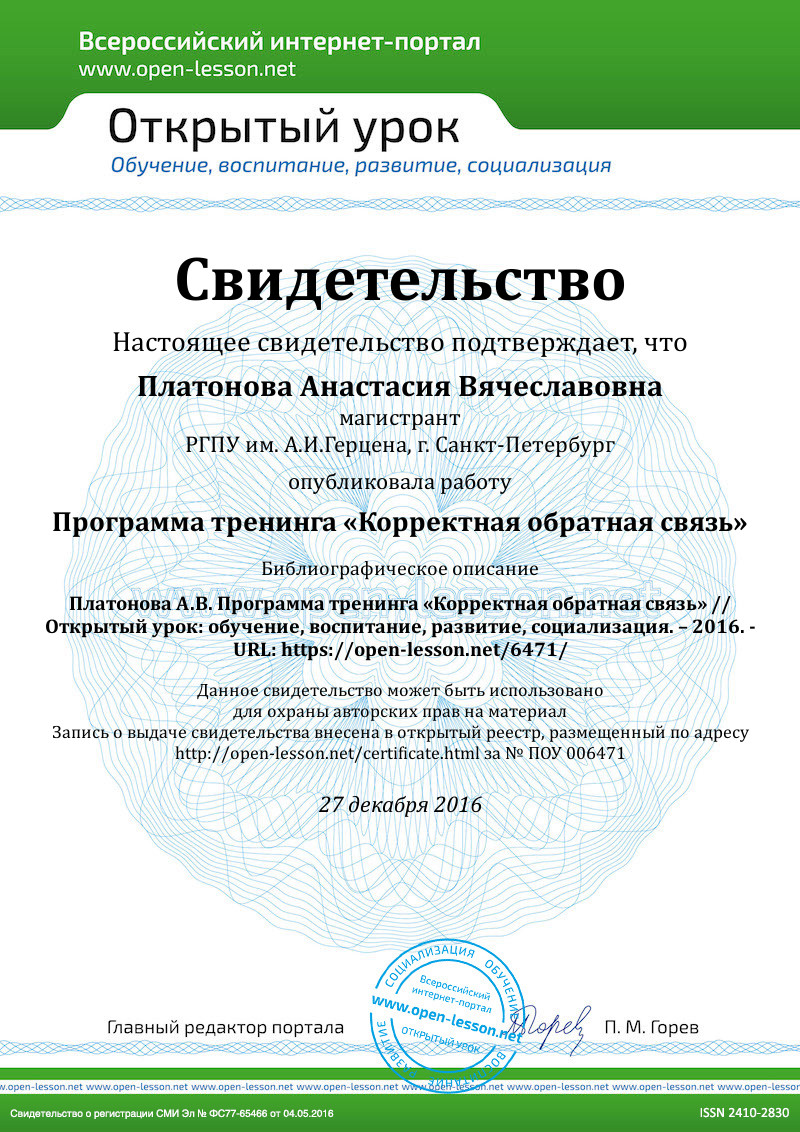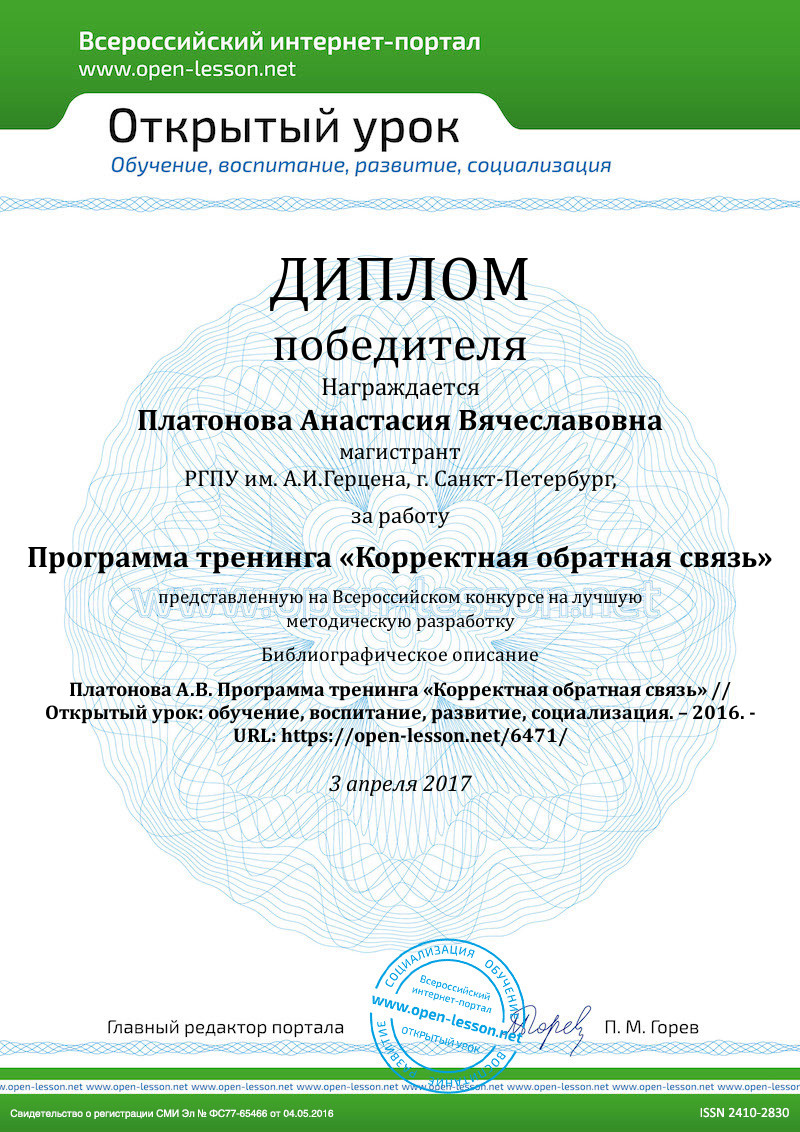 Умение грамотно давать обратную связь – ключевой навык, необходимый каждому участнику тренинга для успешного его прохождения. Наш опыт практических занятий с различными целевыми аудиториями (младшие школьники, подростки среднего и старшего возраста) свидетельствуют о том, что эффективность практических психологических занятий значительно возрастает, если его участники владеют навыками подачи корректной обратной связи. Нижеприведенный материал можно использовать как в качестве материала для самостоятельного занятия, так и сделать частью любого тематического цикла тренинговых занятий.