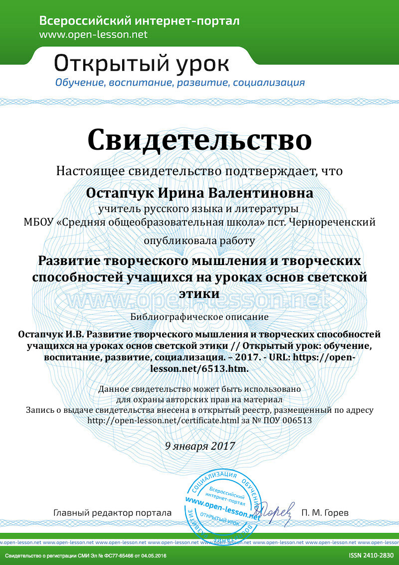 6. Гащенко В. М., Сухоиванова О. В. Развитие творческих способностей учащихся на уроках русского языка // Научно-методический электронный журнал «Концепт». – 2015. – Т. 38. – С. 31–35. – URL: http://e-koncept.ru/2015/45114.htm.