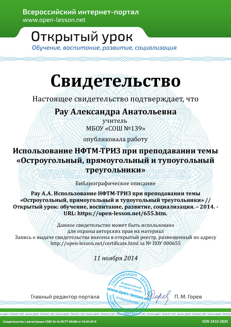 В данной статье представлена разработка креативного урока геометрии по теме «Остроугольный, прямоугольный и тупоугольный треугольники» на основе педагогическй системы НФТМ – ТРИЗ М. М. Зиновкиной.