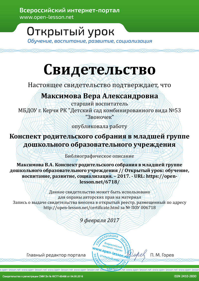 Разработка родительского собрания в младшей группе.