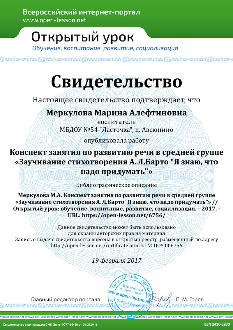 – Но вот, ребята, мы и вспомнили стихотворения А. Барто. Эти стихотворения мы учили маленькими, но сейчас мы подросли, и будем учить новое стихотворение.