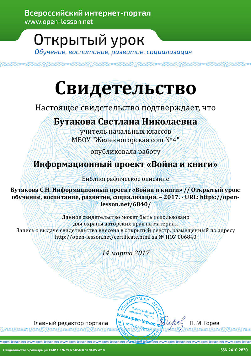 Книгам войны и посвящены мои поиски и исследования. Я думаю, что они имеют большую ценность для подрастающего поколения. Ведь, кто не знает прошлого, у того нет будущего.