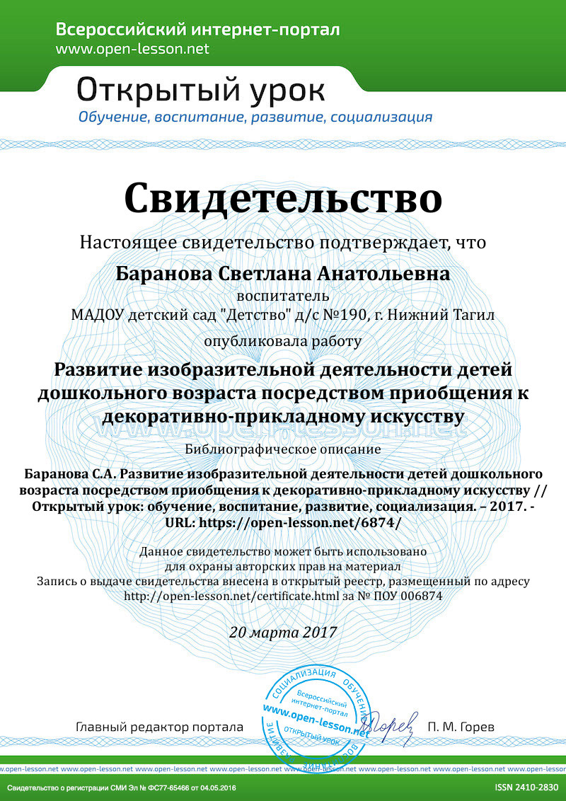 Повышению эффективности художественно-эстетического развития дошкольников способствует приобщение к народному декоративно-прикладному искусству в интересной и привычной для современных детей форме – посредством использования медиаресурсов. Разнообразие современных медиасредств (детских сайтов, электронных энциклопедий и пособий, электронных каталогов и поурочных материалов (в большей мере познавательно-информационной направленности); компьютерных игр и разработанных для детей приложений (графические редакторы, «игры-конструкторы») (деятельно-игровой направленности); электронных презентаций, созданных педагогами-практиками) позволяет приблизить «прошлое» к детям.