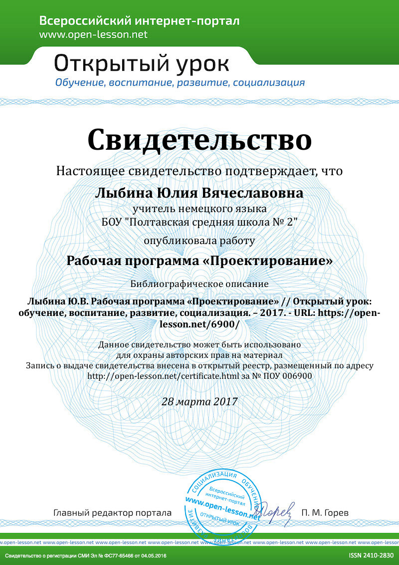 - Основная образовательная программа основного общего образования БОУ «Полтавская СШ №2»
