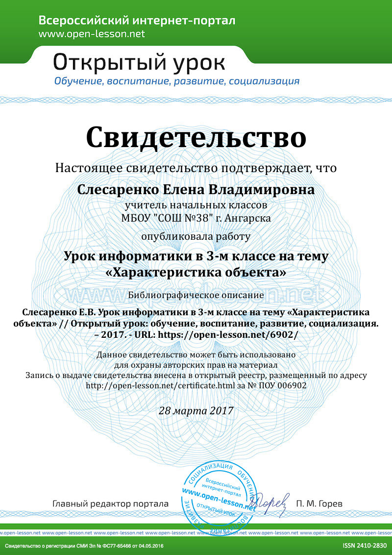 Образовательная: закрепить понятийный аппарат по разделу «Объект» и способы работы по составлению характеристики объекта и по умению определять имя объекта с опорой на ЭОР, учебник.