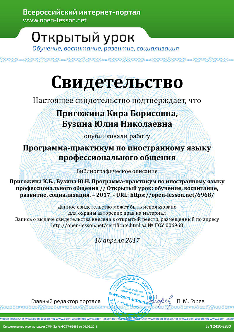 1. Цели учебной практики по дисциплине «Практикум по иностранному языку профессионального общения»
