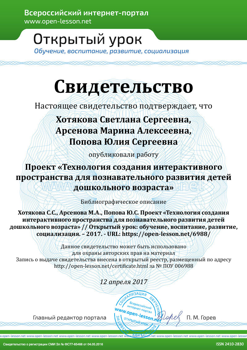 Реализация проекта «Технология создания интерактивного пространства для познавательного развития детей дошкольного возраста» может стать основой для выработки стратегии и тактики внедрения информационных технологий в образовательный процесс дошкольного образовательного учреждения.