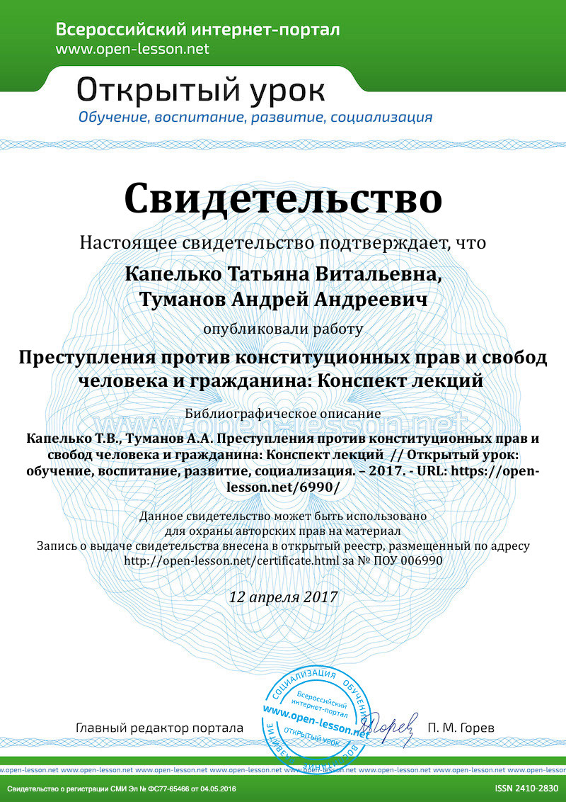 Кроме того, специфика рассматриваемых преступлений заключается в том, что во многих случаях для принятия решения о наличии в действии виновных лиц состава преступления, необходимо проведение анализа содержания юридических норм, содержащихся не только напрямую в Конституции РФ, но и в других нормативных актах (федеральных законах, кодексах) о чем будет говориться отдельно.